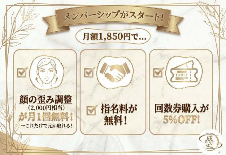 当院独自の【顔の歪み調整】は、顔の左右差や顎関節の痛みや不調など、他店では出せない驚きの効果に大満足◎